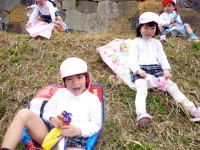 お天守へおでかけ。シートで滑って、楽しい〜♪