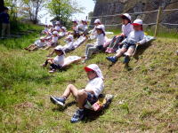 お天守へおでかけ。草花や虫をポケット図鑑で観察したり、