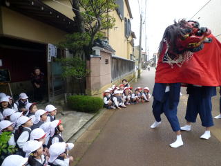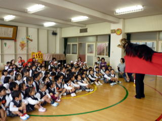 幼稚園に子ども獅子が来てくれました。