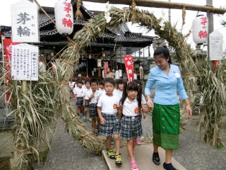ラオスから来た先生と一緒に茅の輪もくぐって、