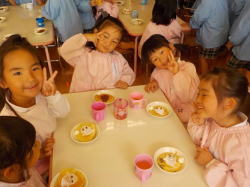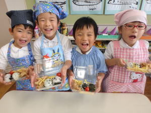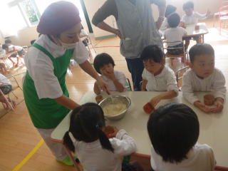 年少組さんは、さつまいもを使って蒸しパン作り♪