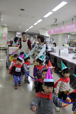 年長組さんは市役所の中を練り歩き♪