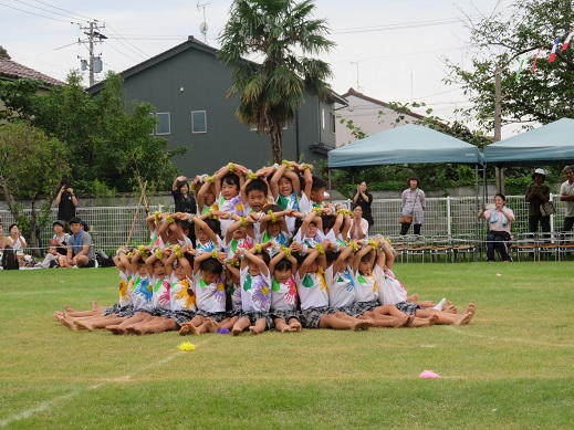 年長組の組体操みんなで一つの花を作りました♪