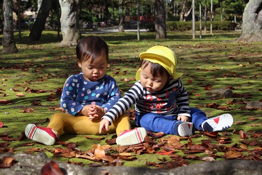 りす組さん落ち葉のじゅうたんでなにかをみつけたのかな?